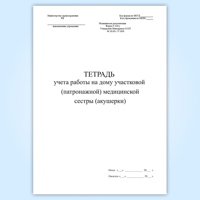 Тетрадь учета работы на дому участковой (патронажной) медицинской сестры (акушерки) (форма 116/у) в Бердске купить