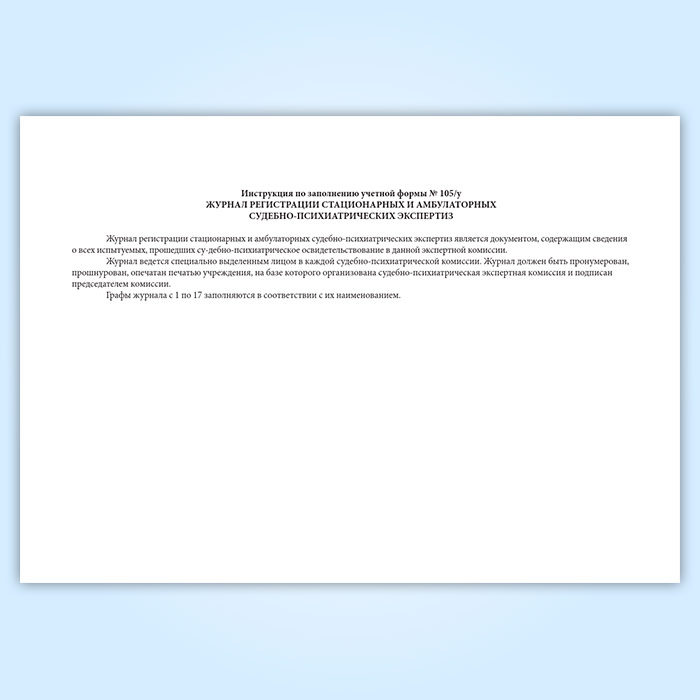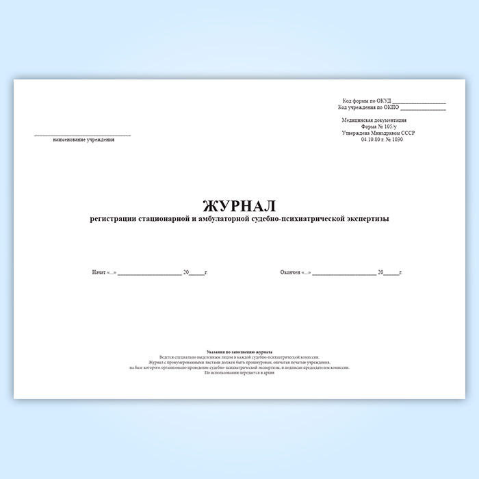 Журнал регистрации стационарной и амбулаторной судебно-психиатрической экспертизы (форма 105/у) в Бердске купить