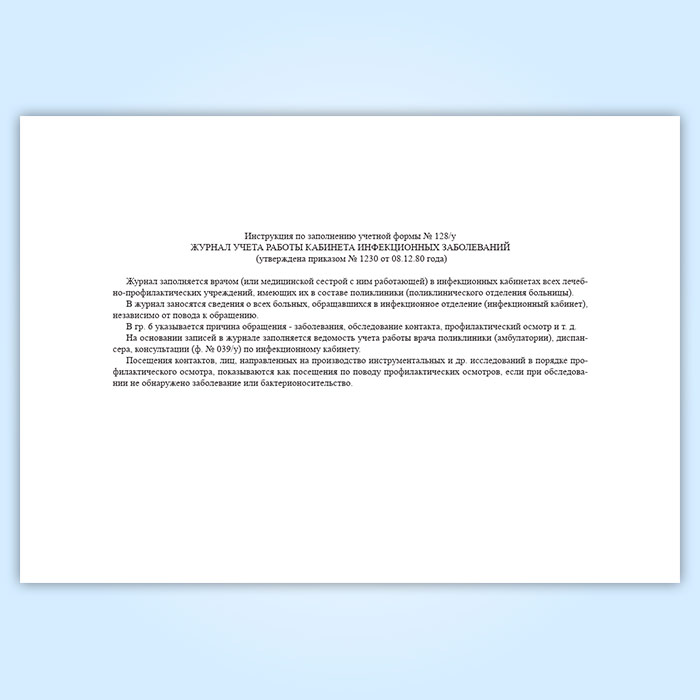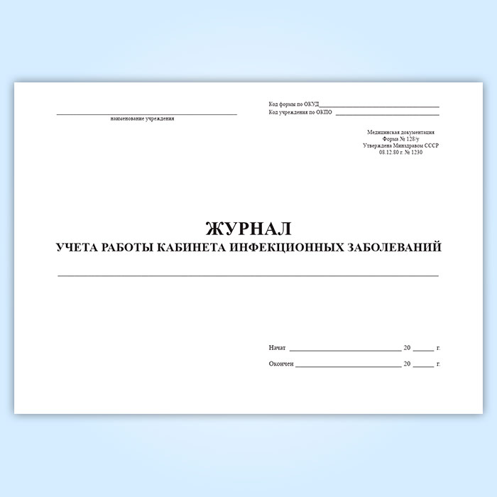 Журнал учета работы кабинета инфекционных заболеваний (форма 128/у) в Бердске купить