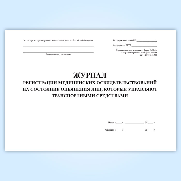 Журнал регистрации медицинских освидетельствований на состояние опьянения лиц, которые управляют транспортными средствами (форма 304/у) в Бердске купить