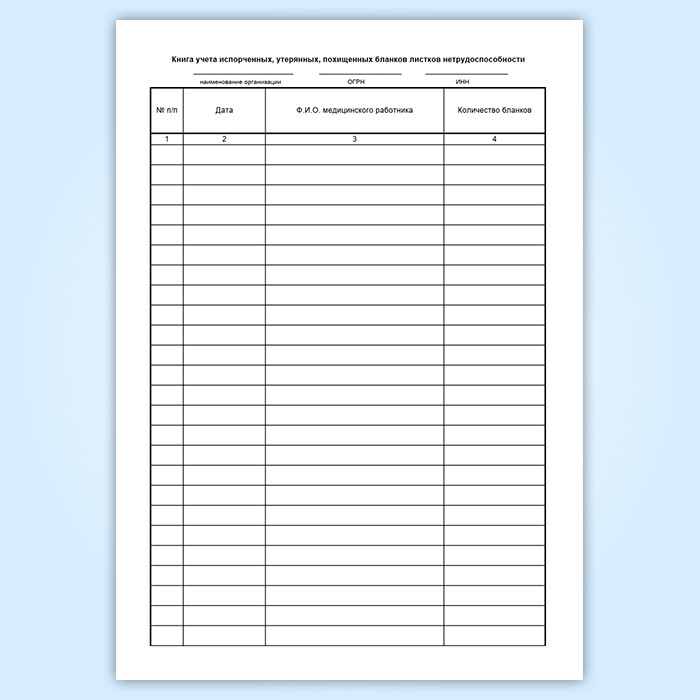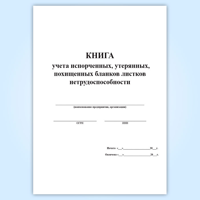 Книга учета испорченных, утерянных, похищенных бланков листков нетрудоспособности в Бердске купить
