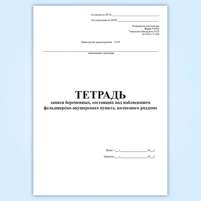 Тетрадь записи беременных, состоящих под наблюдением ФАП, колхозного роддома (форма 075/у) в Бердске купить