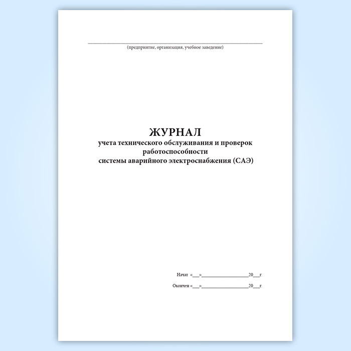 Журнал учета технического обслуживания и проверок работоспособности системы аварийного электроснабжения (САЭ) в Бердске купить