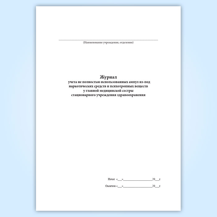 Журнал учета не полностью использованных ампул из-под наркотических средств и психотропных веществ у главной медицинской сестры стационарного учреждения здравоохранения в Бердске купить