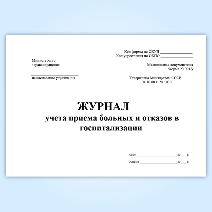 Журнал учета приема больных и отказов в госпитализации (форма 001/у) в Бердске купить