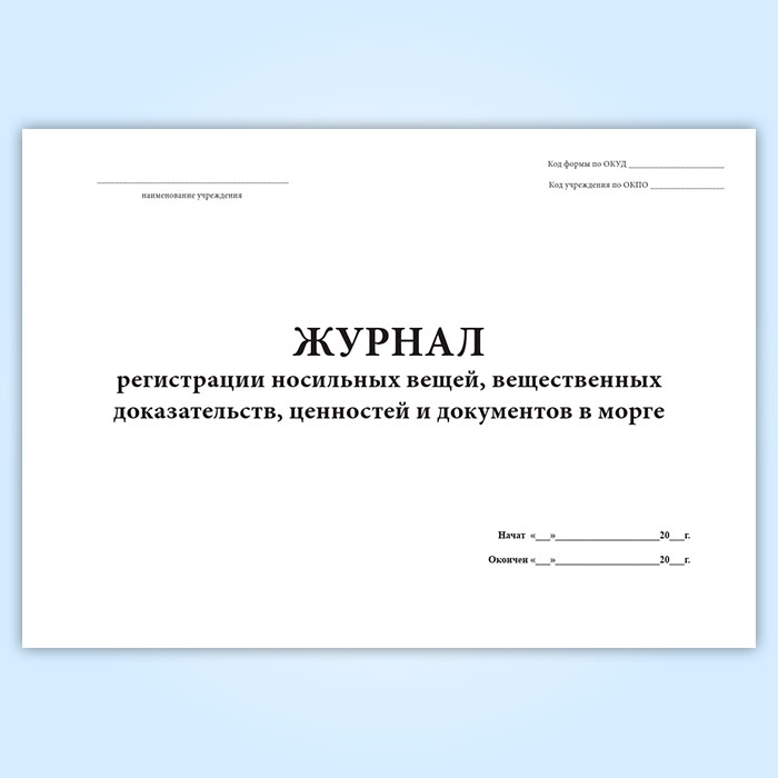 Журнал регистрации носильных вещей, вещественных доказательств, ценностей и документов в морге (форма 191/у) в Бердске купить