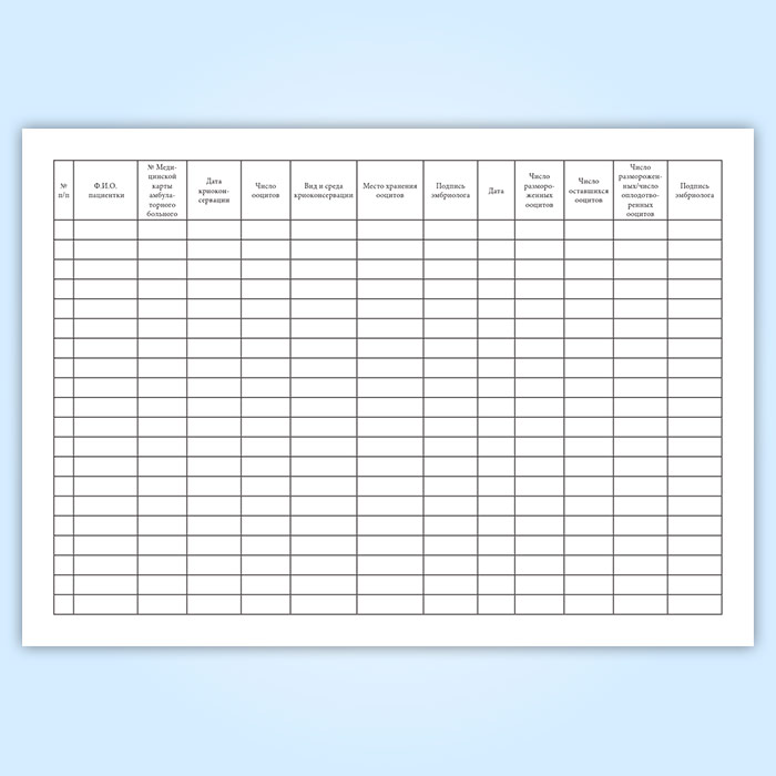 Журнал учета, хранения и использования криоконсервированных ооцитов пациенток в Бердске купить