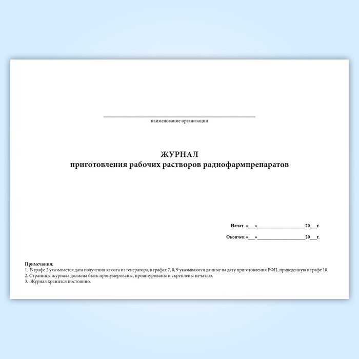Журнал приготовления рабочих растворов радиофармпрепаратов в Бердске купить