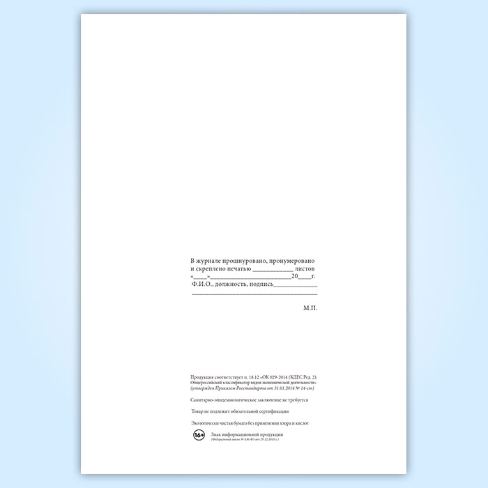 Вы получаете печатную продукцию прошнурованной и c местом для вашей печати в соответствии с действующими нормативными документами:
