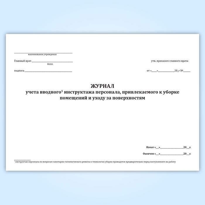 Журнал учета вводного инструктажа персонала, привлекаемого к уборке помещений и уходу за поверхностями в Бердске купить