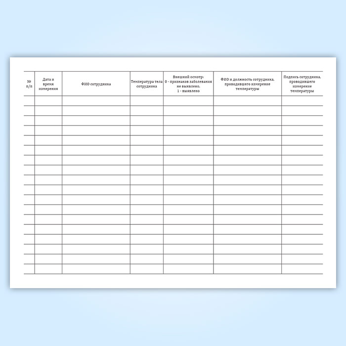 Журнал учета измерения температуры сотрудников (горизонтальный) в Бердске купить
