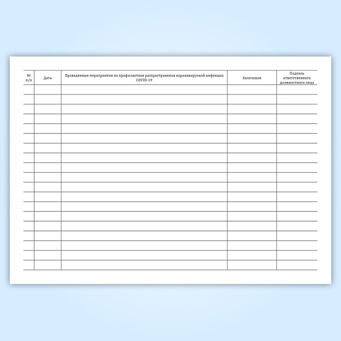 Журнал учета проведенных мероприятий по профилактике распространения коронавирусной инфекции COVID-19 в Бердске купить