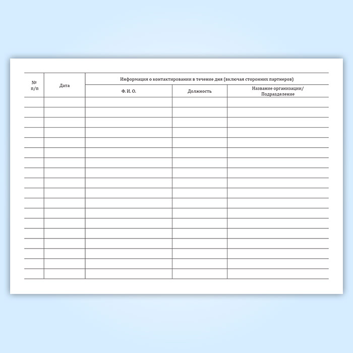 Журнал учета контактов сотрудника (в течение дня) в Бердске купить