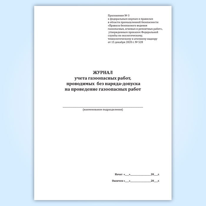 Журнал учета газоопасных работ, проводимых без наряда-допуска на проведение газоопасных работ в Бердске купить