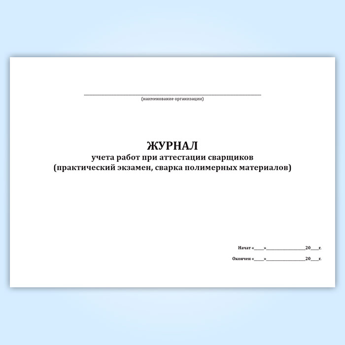 Журнал учета работ при аттестации сварщиков (практический экзамен, сварка полимерных материалов) в Бердске купить
