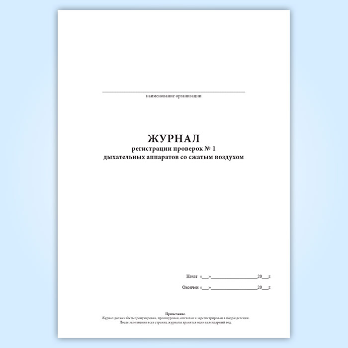 Журнал регистрации проверок N 1 дыхательных аппаратов со сжатым воздухом в Бердске купить