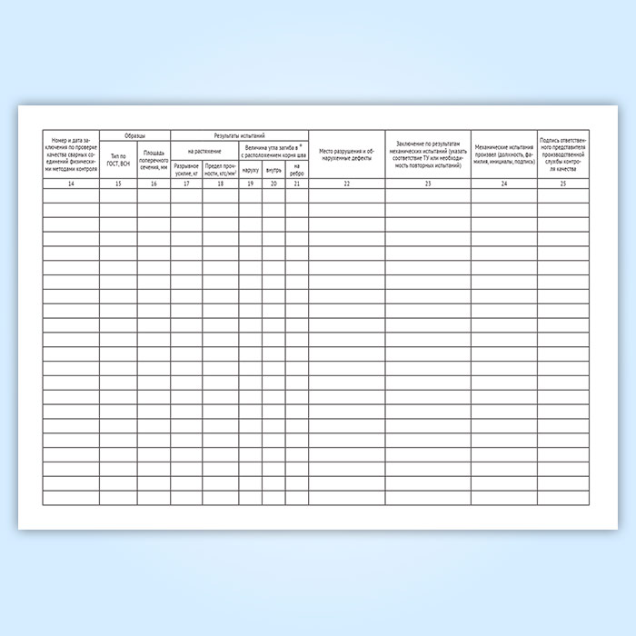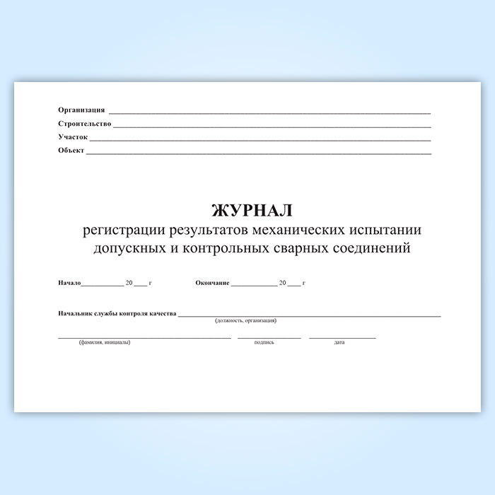 Журнал регистрации результатов механических испытаний допускных и контрольных сварных соединений в Бердске купить