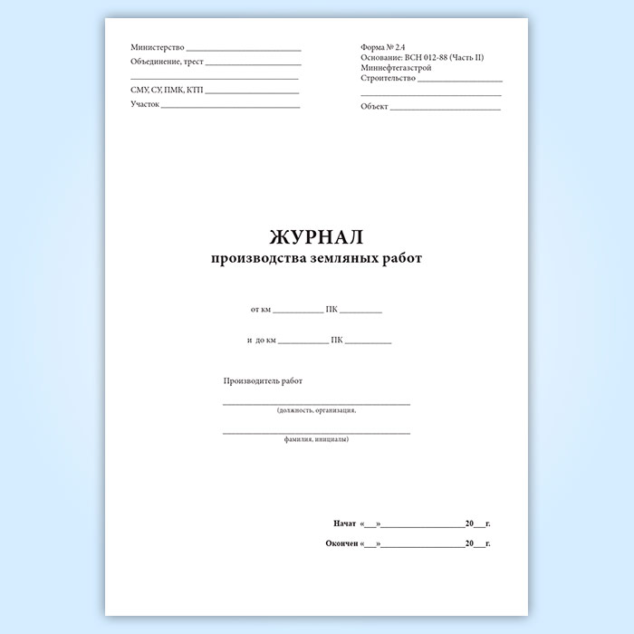 Журнал производства земляных работ (форма 2.4) (трубопроводы) в Бердске купить