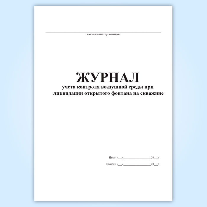 Журнал учета контроля воздушной среды при ликвидации открытого фонтана на скважине в Бердске купить