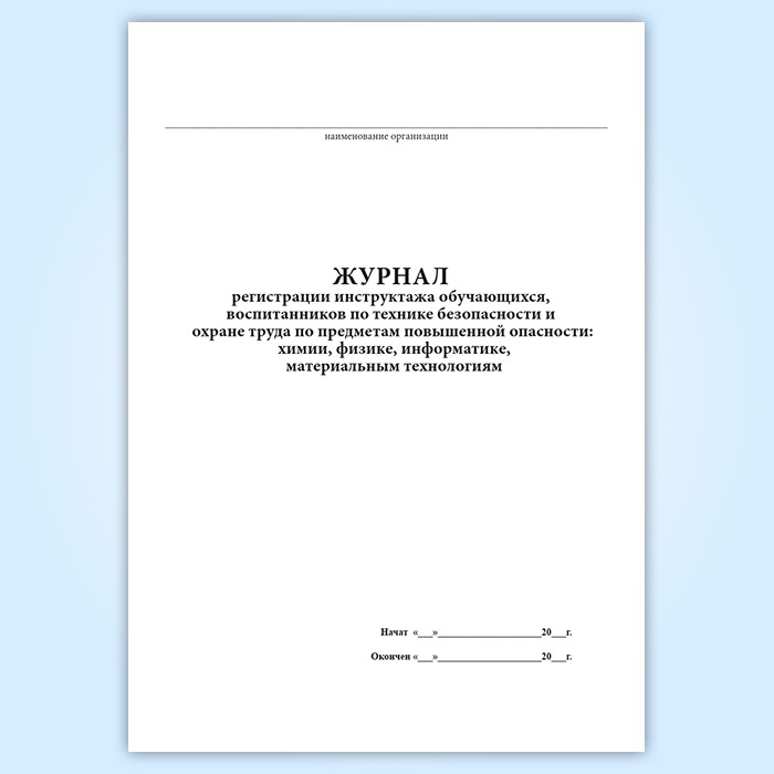 Журнал регистрации инструктажа обучающихся, воспитанников по технике безопасности и охране труда по предметам повышенной опасности: химии, физике, информатике, материальным технологиям в Бердске купить