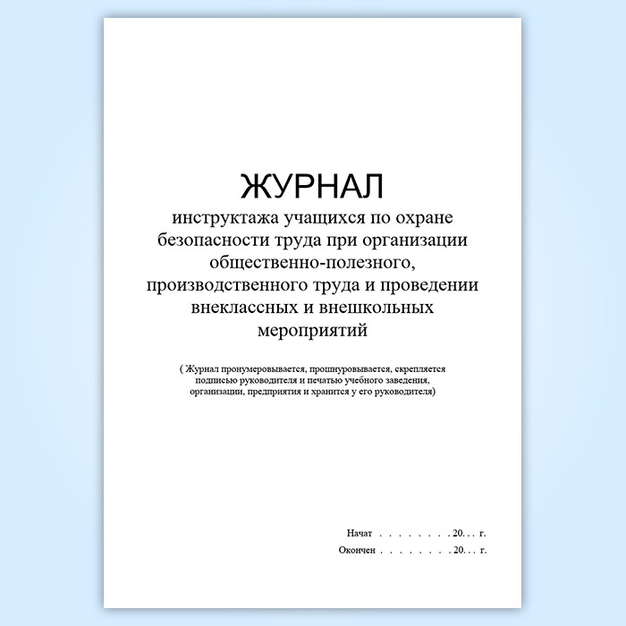 Журнал инструктажа учащихся по охране безопасности труда при организации общественно-полезного,производственного труда и проведении внеклассных и внешкольных мероприятий в Бердске купить