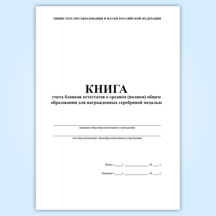 Книга учета бланков аттестатов о среднем (полном) общем образовании для награжденных серебряной медалью в Бердске купить