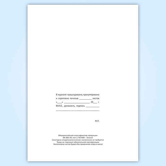 Вы получаете печатную продукцию прошнурованной и c местом для вашей печати в соответствии с действующими нормативными документами: