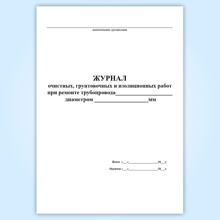 Журнал очистных, грунтовочных и изоляционных работ при ремонте трубопровода в Бердске купить