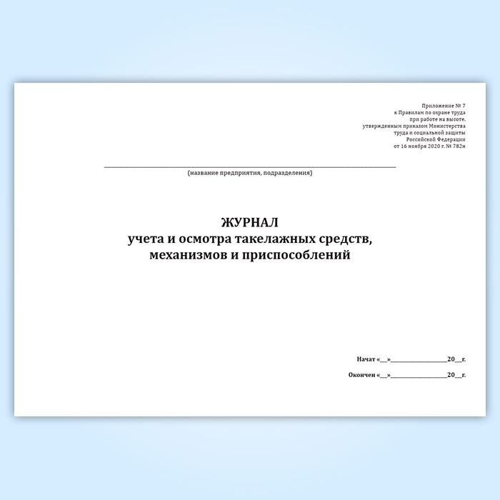 Журнал учета и осмотра такелажных средств, механизмов и приспособлений (Приказ Минтруда России от 16.11.2020 N 782н) в Бердске купить