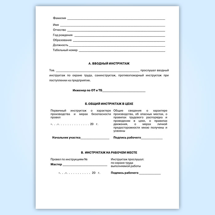 Личная книжка инструктажа по охране труда в Бердске купить