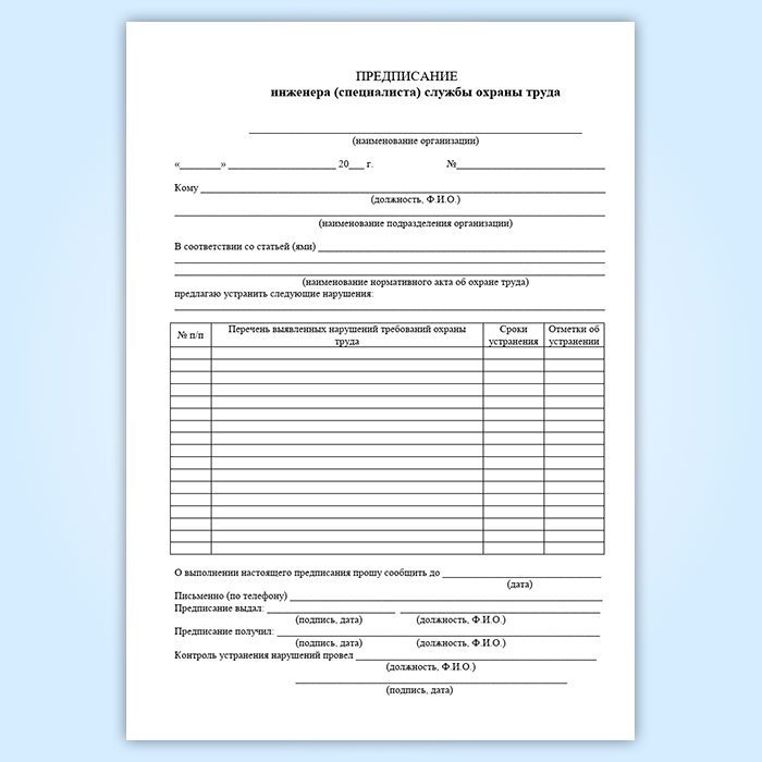 Журнал учета выдачи предписаний инженера (специалиста) службы охраны труда в Бердске купить