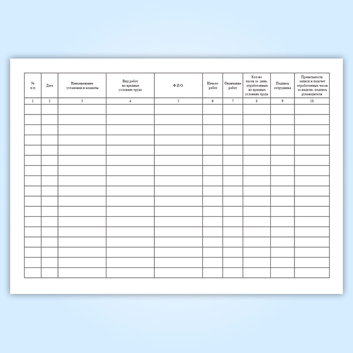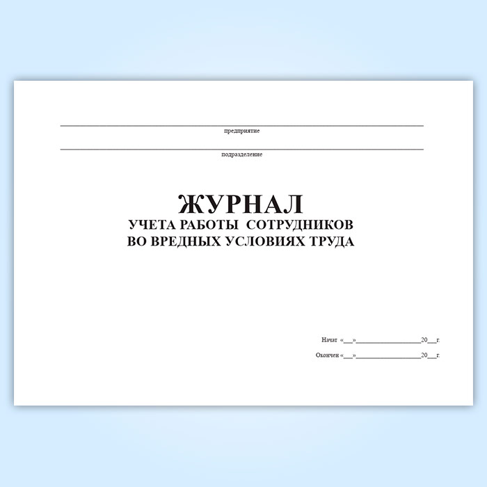 Журнал учета работы сотрудников во вредных условиях труда в Бердске купить
