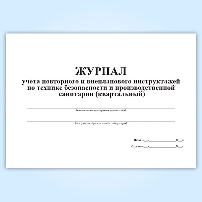 Журнал учета повторного и внепланового инструктажей по технике безопасности и производственной санитарии (квартальный) в Бердске купить