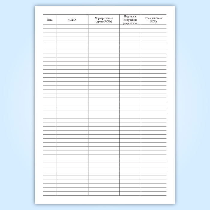 Журнал регистрации и выдачи поступающих разрешений на хранение и ношение огнестрельного оружия (РСЛа) в Бердске купить