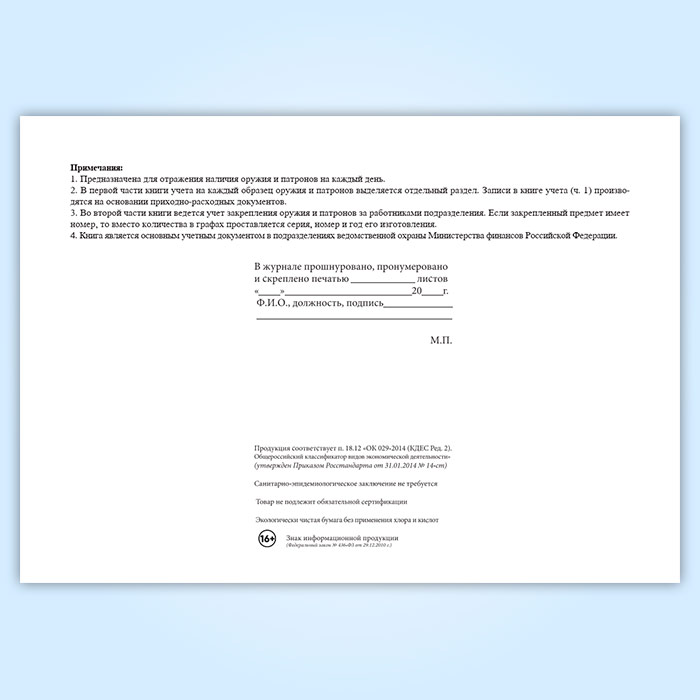 Книга учета и персонального закрепления оружия и патронов в Бердске купить
