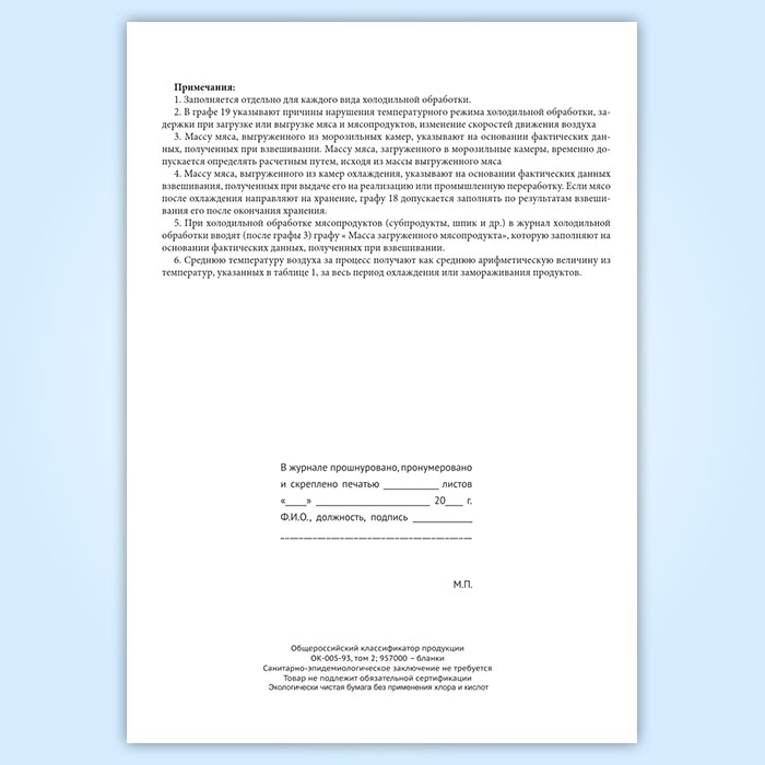 Журнал холодильной обработки мяса и мясопродуктов в камерах охлаждения и замораживания в Бердске купить