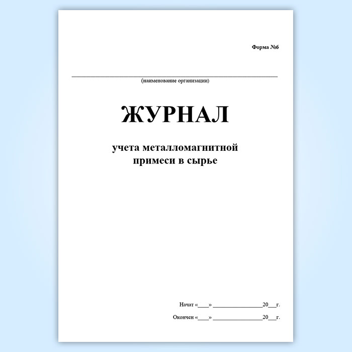 Журнал учета металломагнитной примеси в сырье (форма № 6) в Бердске купить