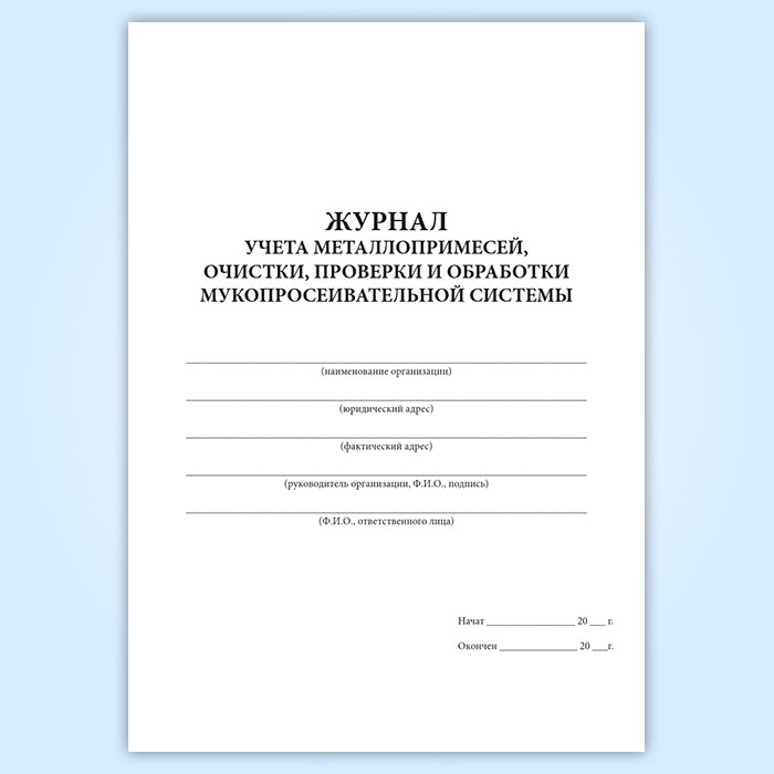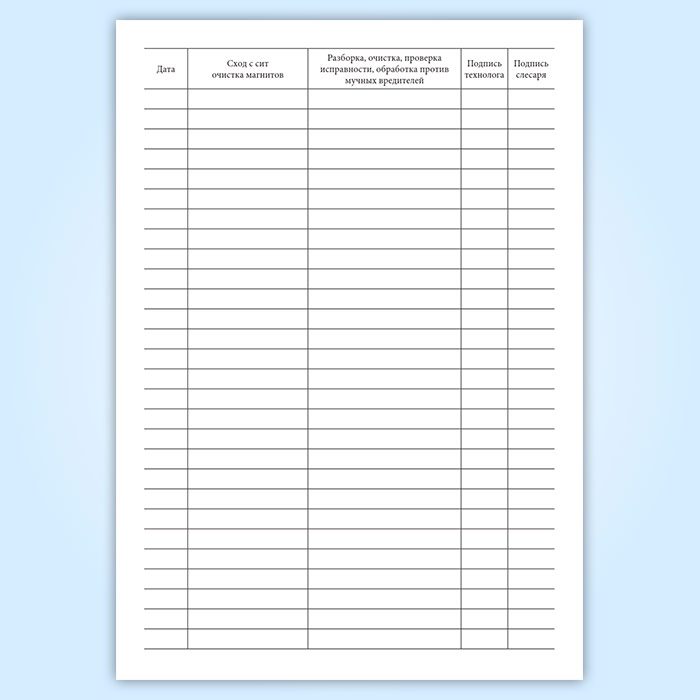Журнал учета металлопримесей, очистки, проверки и обработки мукопросеивательной системы в Бердске купить
