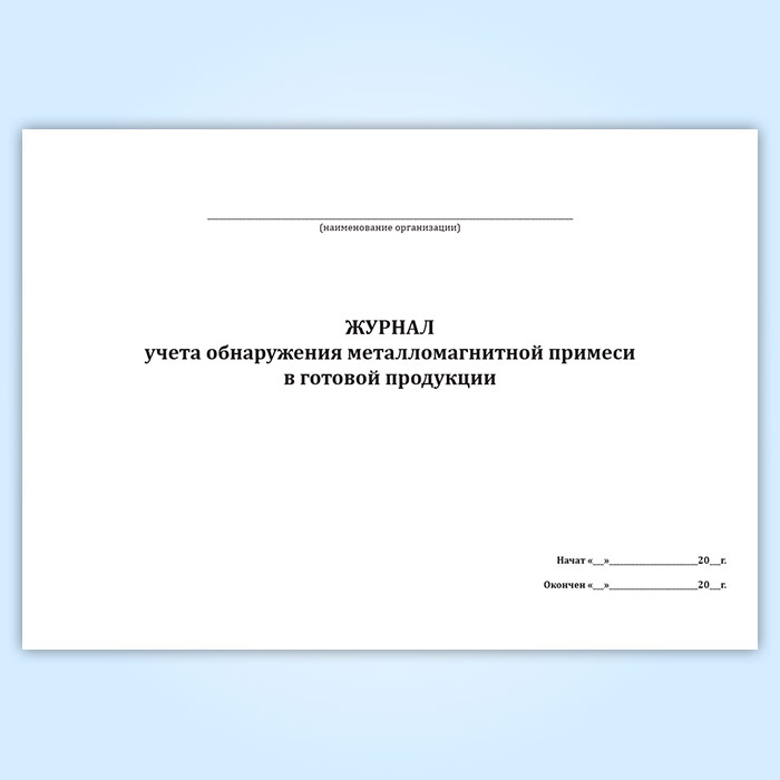Журнал учета обнаружения металломагнитной примеси в готовой продукции в Бердске купить