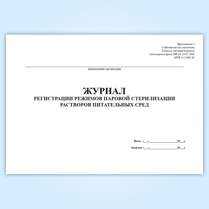 Журнал регистрации режимов паровой стерилизации растворов питательных сред в Бердске купить