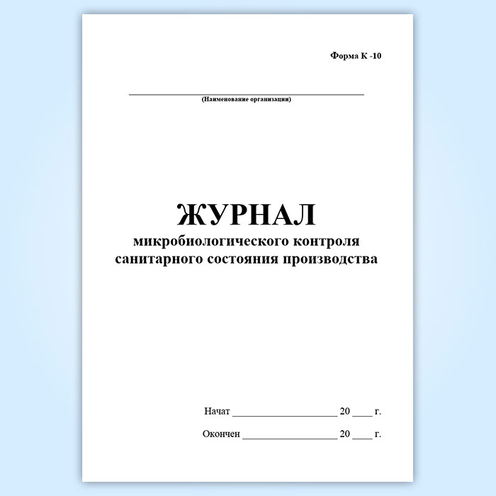 Журнал микробиологического контроля санитарного состояния производства (форма К-10) в Бердске купить