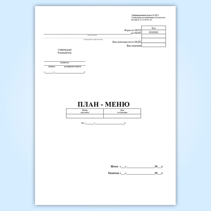 Журнал План-меню (форма ОП-2) в Бердске купить