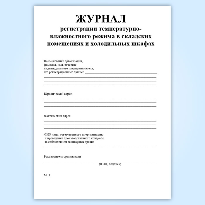 Журнал регистрации температурно-влажностного режима в складских помещениях и холодильных шкафах в Бердске купить