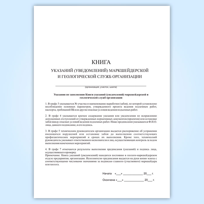 Книга указаний (уведомлений) маркшейдерской и геологической служб организации в Бердске купить