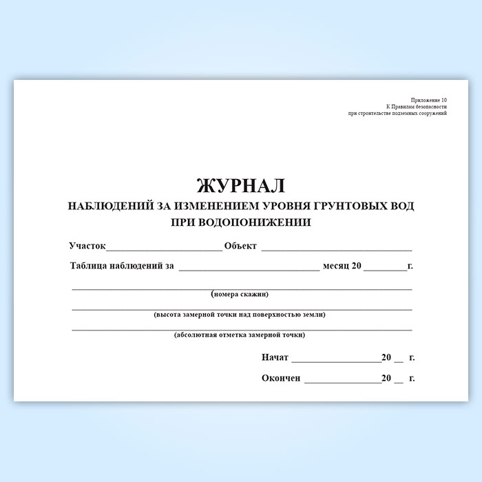 Журнал наблюдений за изменением уровня грунтовых вод при водопонижении в Бердске купить