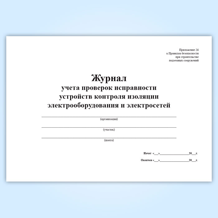 Журнал учета проверок исправности устройств контроля изоляции электрооборудования и электросетей в Бердске купить