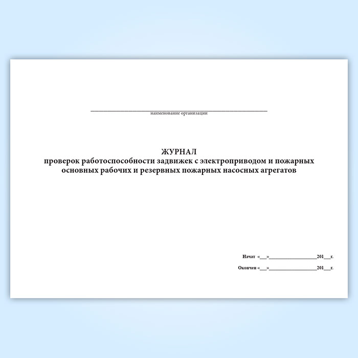 Журнал проверок работоспособности задвижек с электроприводом и пожарных основных рабочих и резервных пожарных насосных агрегатов в Бердске купить