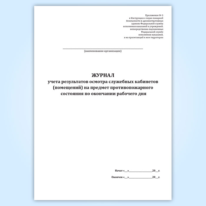 Журнал учета результатов осмотра служебных кабинетов (помещений) на предмет противопожарного состояния по окончании рабочего дня в Бердске купить
