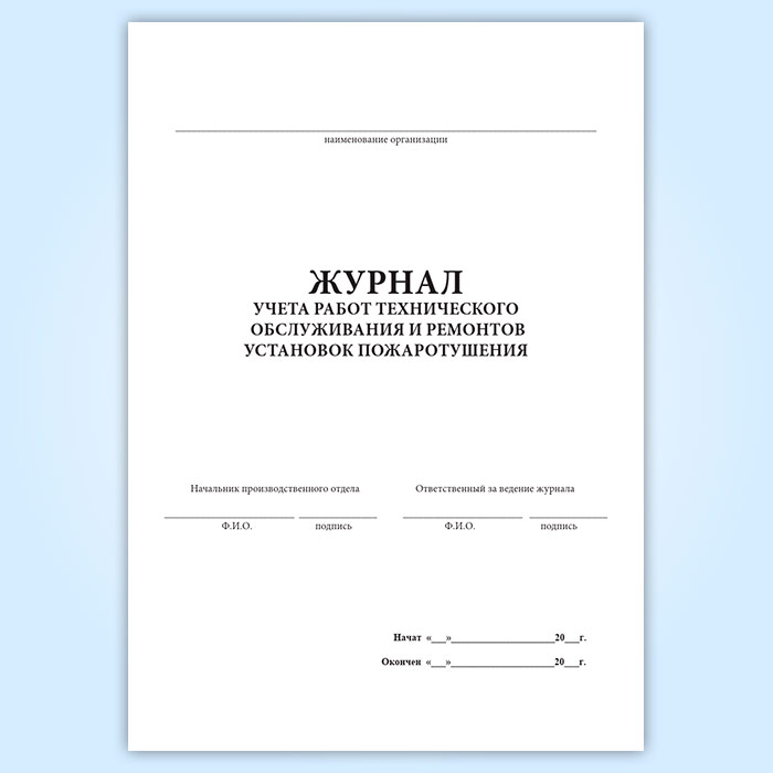Журнал учета работ технического обслуживания и ремонтов установок пожаротушения в Бердске купить