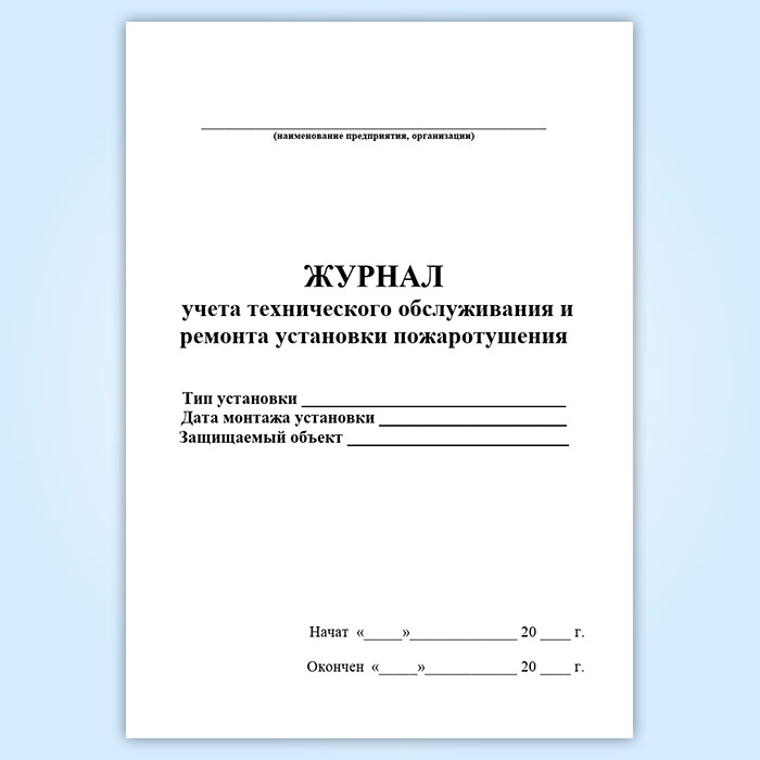 Журнал учета технического обслуживания и ремонта установки пожаротушения в Бердске купить